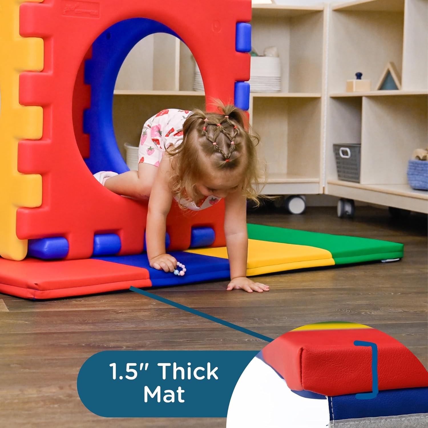 - GROSS MOTOR DEVELOPMENT: Indoor playgrounds or soft play zones are a trending must-have for homes and schools. Use this mat during active play time to help toddlers and kids work on balance, coordination and other gross motor skills.