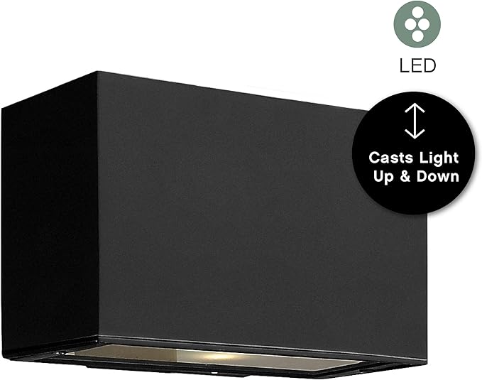 Hinkley Atlantis Extra Small Up/Down Wall Mount Outdoor Lantern - Aluminum, Etched Glass Lens, Integrated LED - Satin Black Finish