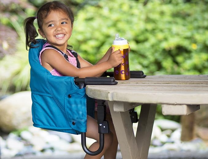 guzzie+Guss Perch Clip On Table Chair – Easy and Secure Setup for Travel (Including Restaurants, Picnics), at Home (Kitchen Islands, Dining Tables) with Machine Washable Fabric, Black