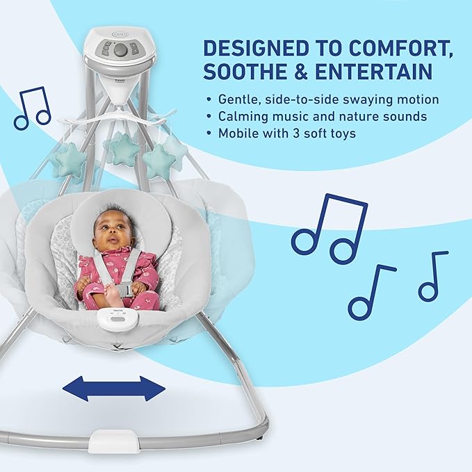 Graco Simple Sway Baby Swing, Side‑to‑Side Sway, Infant Swing with 6 Speeds, Vibration, Abbington