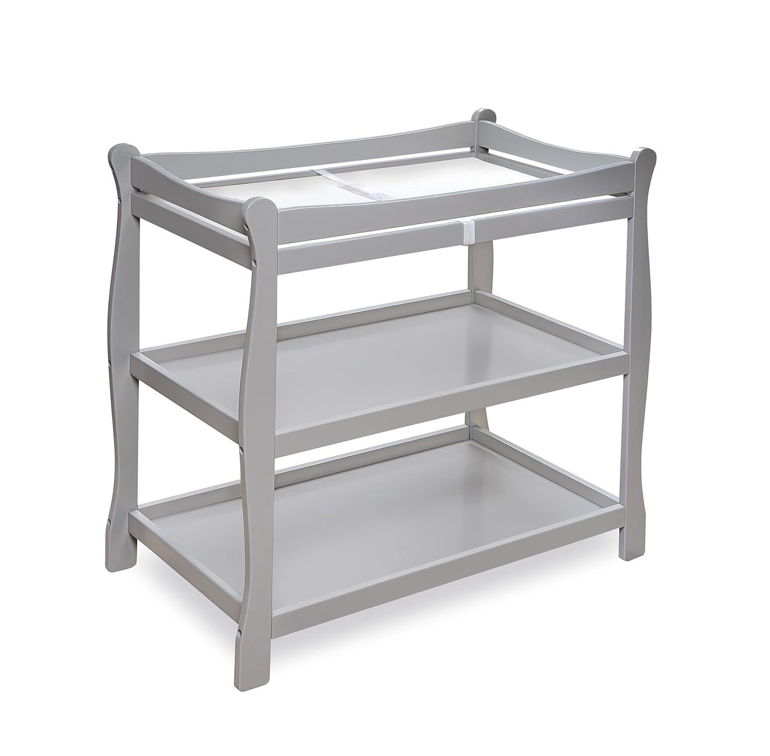 Badger Basket Sleigh Style Baby Changing Table - Nursery Diaper Station with Safety Rails, Foam Pad, and Two Storage Shelves - Nursery Organizer - Gray