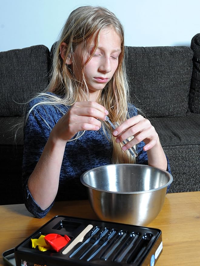 - Challenging and engaging: challenge your kid's mind and give them the magic of discovering new things through experimentation and engagement..For the whole family: science projects for kids can be fun and engaging for the entire family. Each kit comes with instructions and simple yet clever scientific explanations. Some experiments may need to be supervised by adults or older children..For the whole family: science projects for kids can be fun and engaging for the entire family. Each kit comes with instructions and simple yet clever scientific explanations. Some experiments may need to be supervised by adults or older children. Professionally designed: each science experiment is professionally designed to increase kids' knowledge and learning through experimentation and development of new ideas..Kit contains all the necessary supplies, a detailed guide, 15 color tablets, 3 pipettes, 2 balloons, 3 test tubes, ice cream wood stick. All inside a beautiful and reusable tin box.