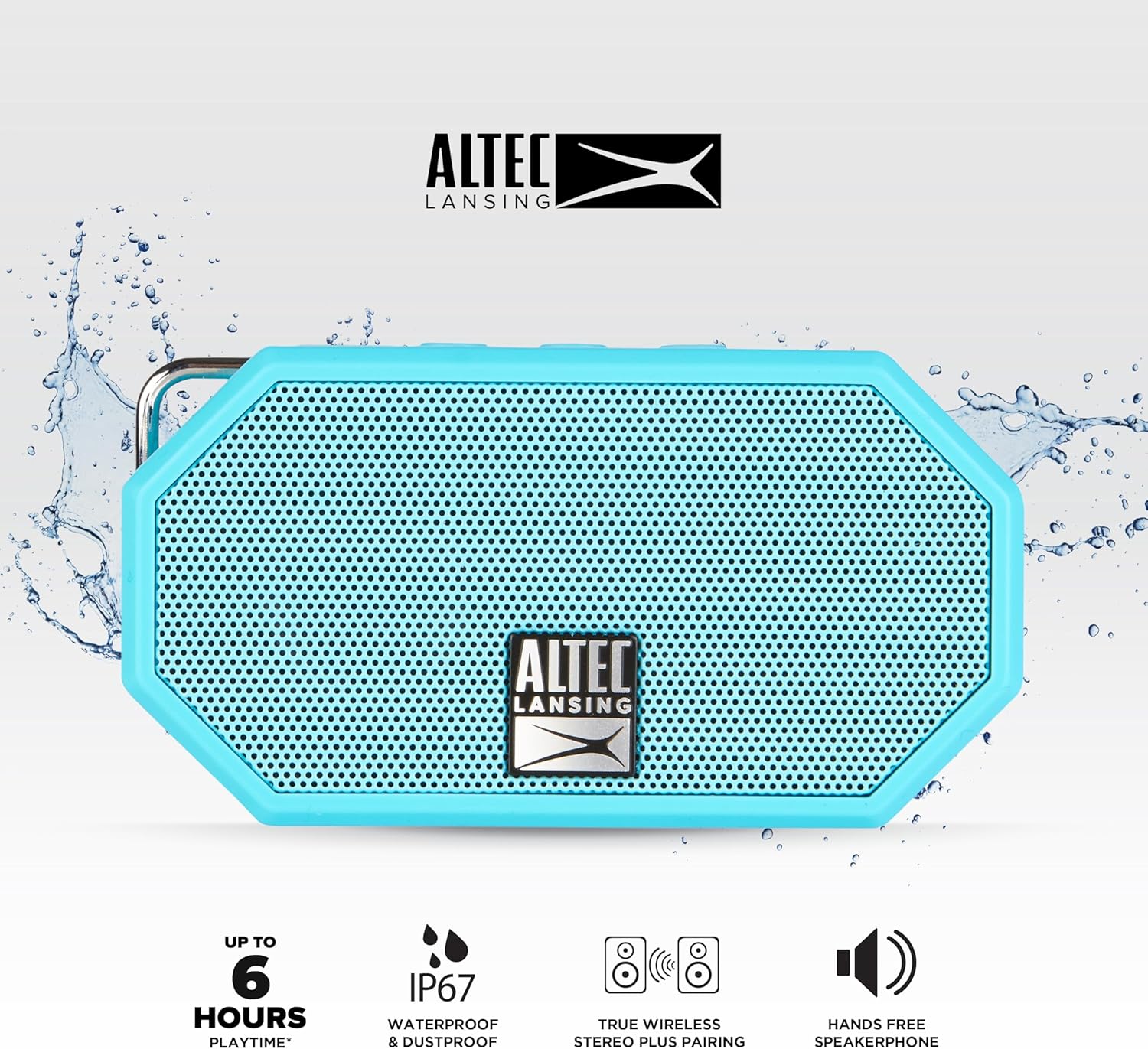Altec Lansing Mini H2O - Waterproof Bluetooth Speaker, IP67 Certified & Floats in Water, Compact & Portable Speaker for Hiking, Camping, Pool, and Beach,Aqua