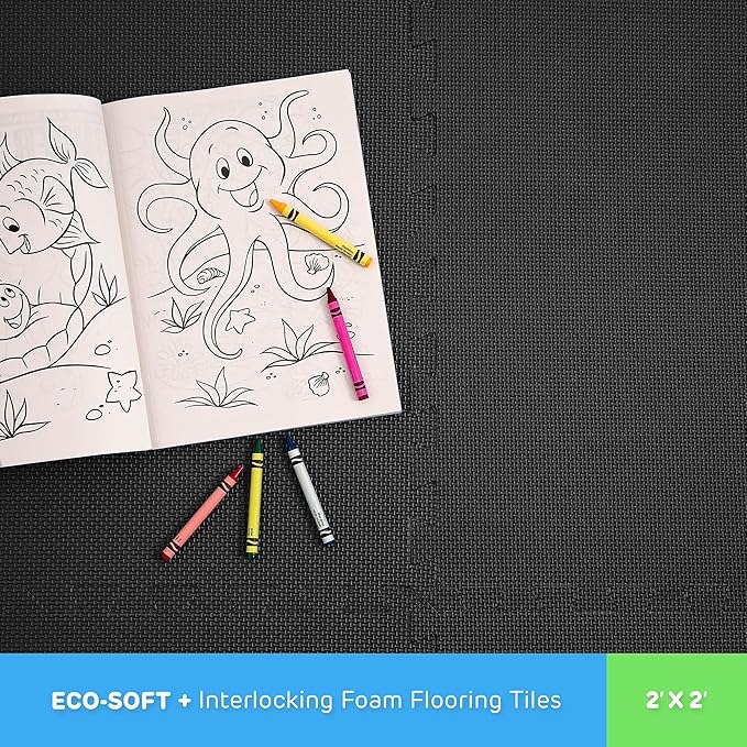 Flooring Inc's 1/2" Soft Non-Toxic Baby Play Mat, Toddler Playmat, Colorful Puzzle PlayMat, Floor Mats for Kids & Babies, EVA Foam Interlocking Tiles for Nursery & Playroom | Black, 12 Tiles, 48 Sq/Ft