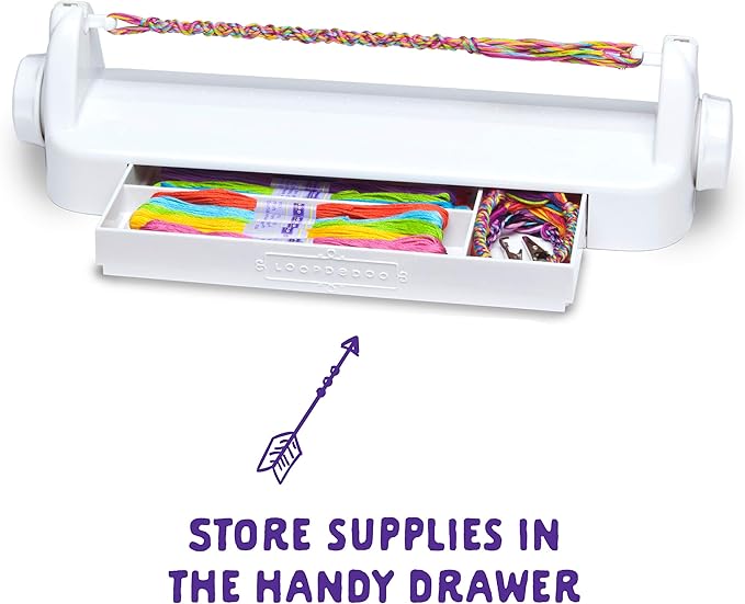 - COMPLETE ARTS & CRAFTS KIT: Includes 1 Loopdedoo spinning loom (with secret storage drawer) and 12 skeins of high quality 100% cotton embroidery thread.