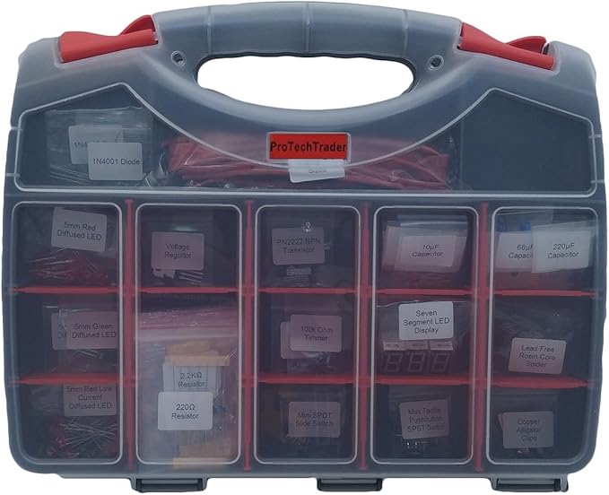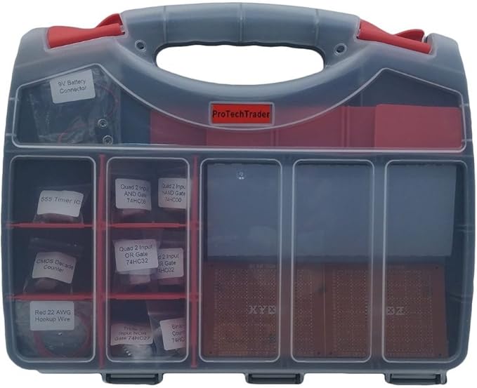 - Double Sided Storage Carrying Case with over 30 compartments to keep your electronics organized - Configurable to hold your completed circuits as well.