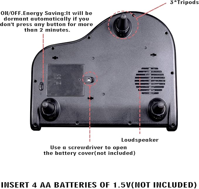 - High Quality & Safe - Made from high quality ABS plastic, nontoxic, environmental friendly to baby. Baby piano toy size is about 28 * 22 * 26 CM/11*8.7*10.2". 4 AA batteries required (Not included)
