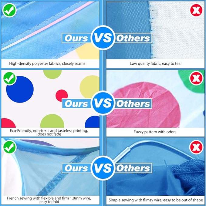 - DURABLE & LIGHT WEIGHT:The ball pit is made with Soft waterproof polyester fabrics and high-strength memory steel holder to make sure your kids safety in happy hour! Easy to wipe cleans, durable.(Note:Please be careful when open it.Don't let your child stay too close when the ball pit pops up.)
