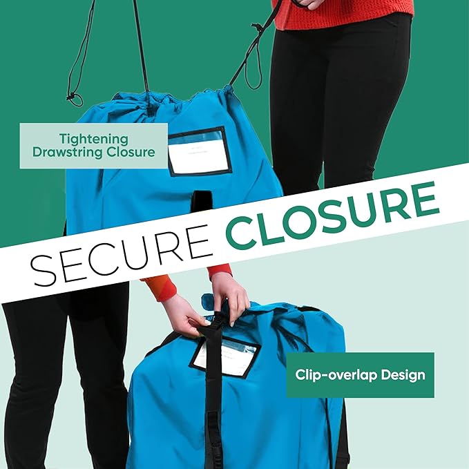 - Waterproof & Secure Protection – Designed with waterproof material, secure drawstrings, and an overlap clip closure, this bag keeps your baby's car seat protected from dirt, dust, and moisture in any travel condition.