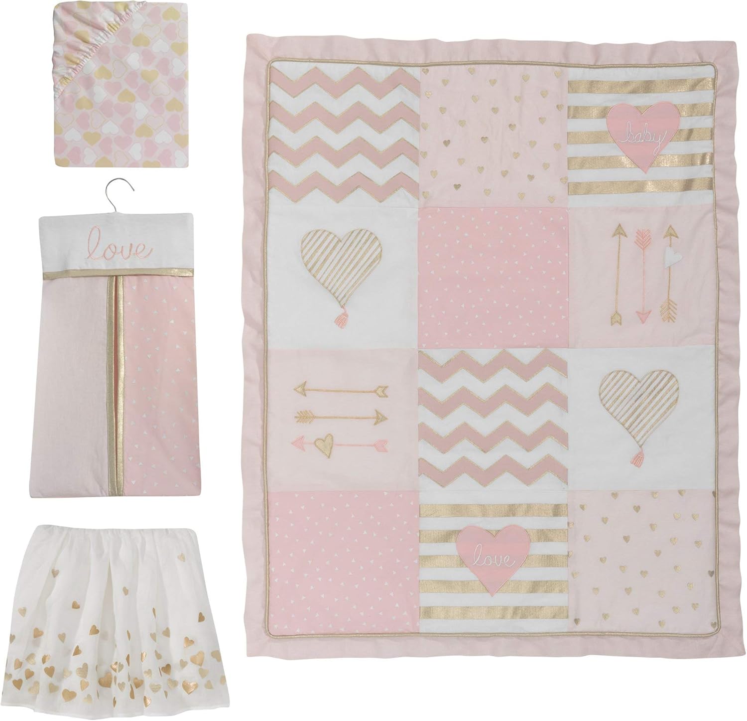 Lambs & Ivy Baby Love Pink/Gold Girl Heart 4 Piece Crib Bedding Set