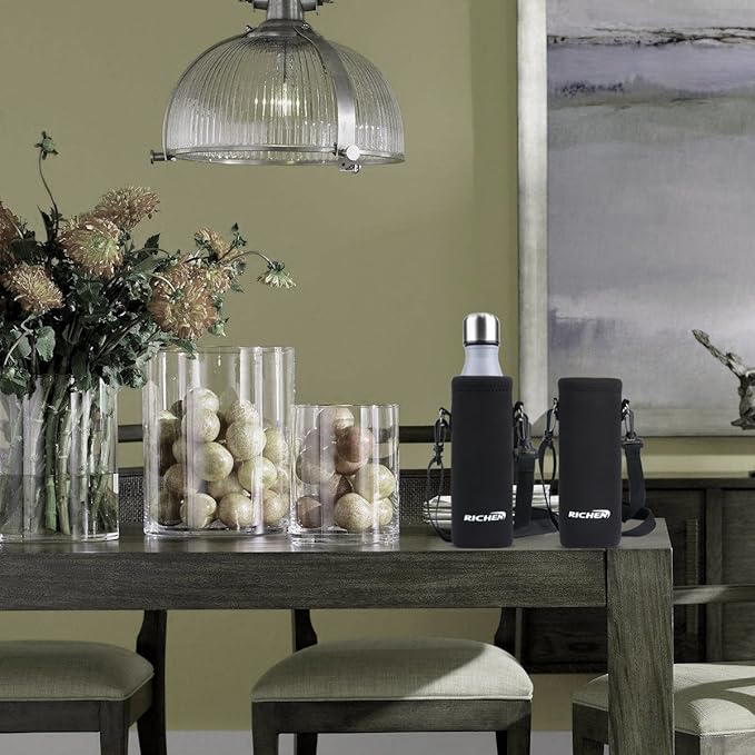 RICHEN Neoprene Water Bottle Carrier Bag with Adjustable Shoulder Strap,Insulated Water Bottle Cover for Stainless Steel/Glass/Plastic Bottles