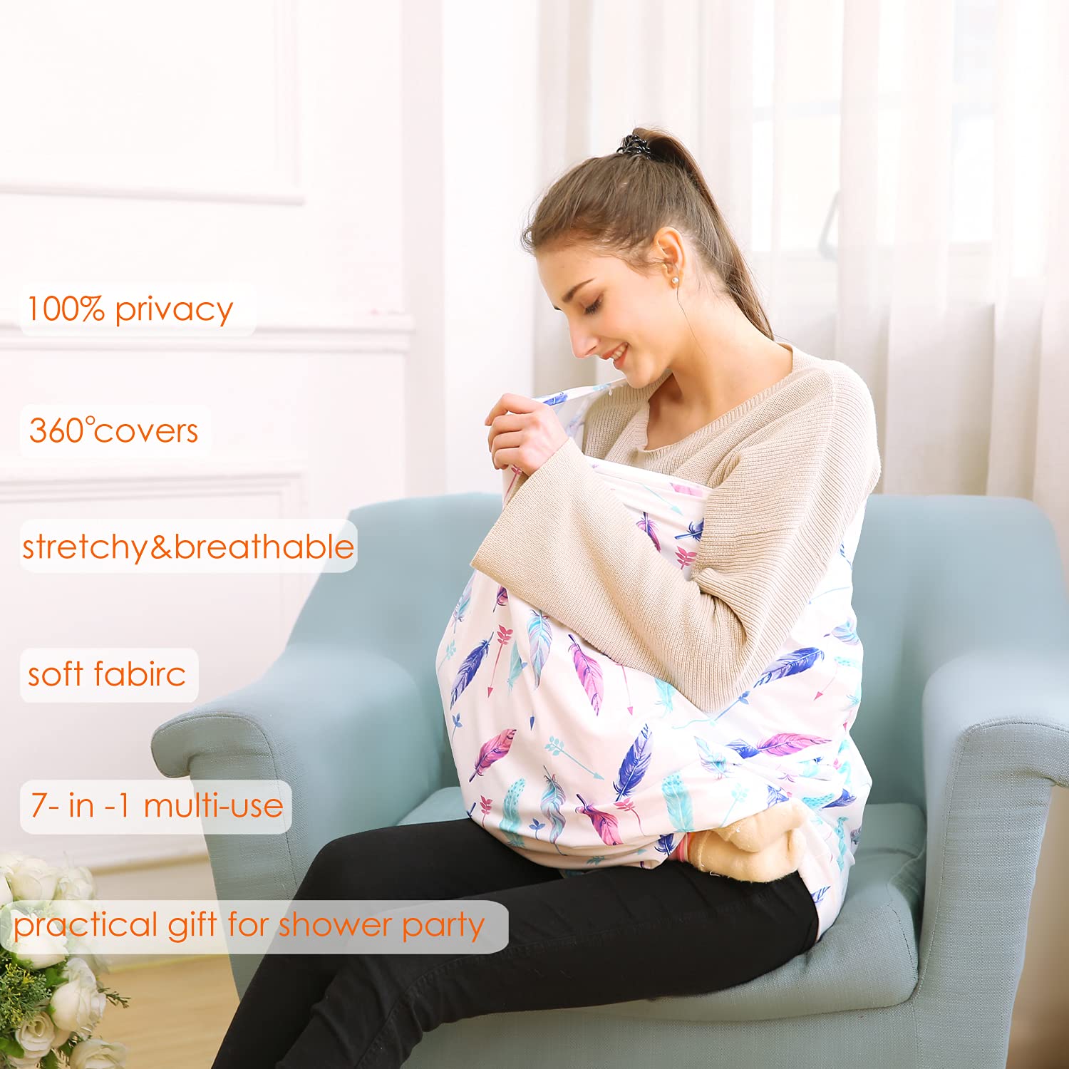 Carseat Canopy Covers for Breastfeeding - Baby Car Seat Covers Breastfeeding Cover Multi Use Boys and Girls Shower Gifts (Feather)