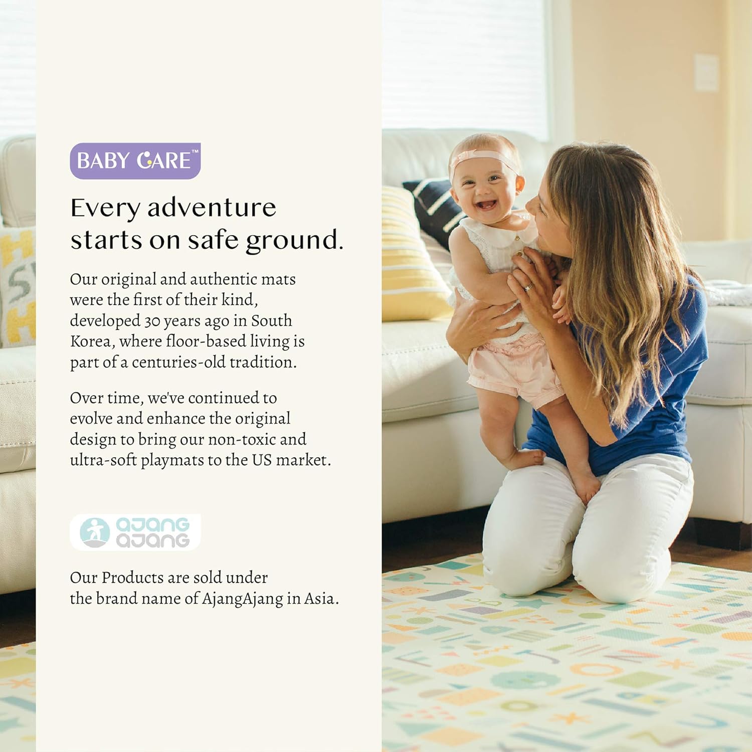 Baby Care Play Mat (Medium, Playful - Zoo Town) 73’’ x 49’’ Original One-Piece Reversible Rollable Waterproof Play Mat for Infants, Babies, Toddler, and Kids