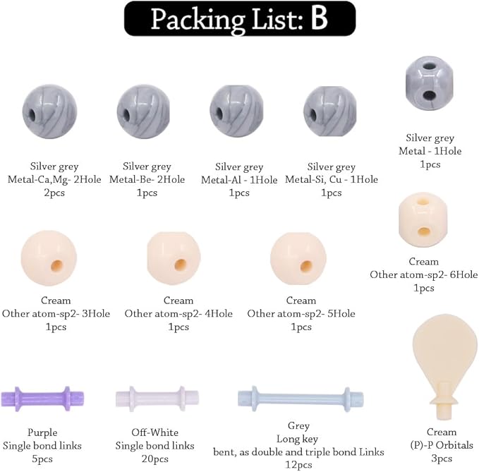 - ★ WHAT YOU GET --- Swpeet brings you this terrific 92-piece molecular model set! Each molecular model kit comes with 52 atom pieces made up of different elements. Also included are 37 links: long flexible ones (good for double and triple bonds), medium-length hard links, and two types of shorter space-filling links.