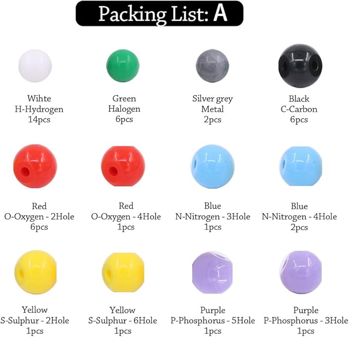 - ★ POWERFUL FUNCTIONS --- This model contains C, H, O, N, P, S and other metals and a variety of single and double bonds, long bonds, long keys. Can be put high school, university chemistry in most of the organic or inorganic molecular structure model for the study of experimental operation.