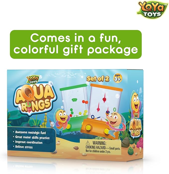 YoYa Toys Aqua Rings Handheld Water Game - Set of 2 - Water Ring Toss and Basketball Hoop Toy - Gift for Ages 3 4 5 6 7 8 9 - Nostalgic 80's 90's Retro Mini Games - Fun Car Road Trip Travel Activities