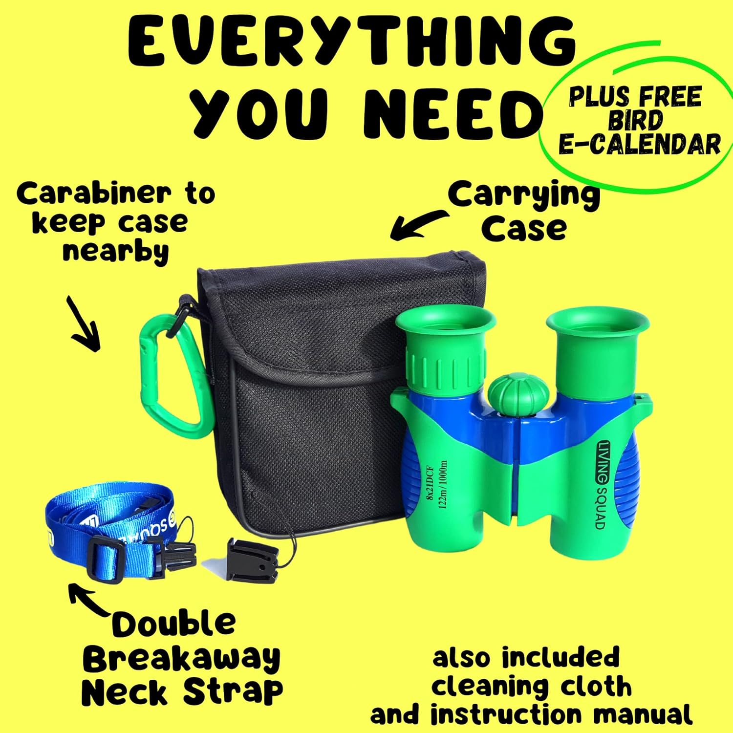 - Special Feature : Durability: Shock Resistant, Slip Resistant, Water Resistant, Ergonomic Colorful Kids Design, Portable, Hands-free case, Lightweight, High Magnification, BAK4 Prism, 8x21 Magnification, Carabiner, Compass, Manual Focus: Focus Knob, One Hand Focus, Safety Measures: Soft Rubber Eyecups, Break-away Strap, Large Eyecups, Food grade Rubber Durability: Shock Resistant, Slip Resistant, Water Resistant, Ergonomic Colorful Kids Design, Portable, Hands-free case, Lightweight, High Magnification, BAK4 Prism, 8x21 Magnification, Carabiner, Compass, Manu… See more