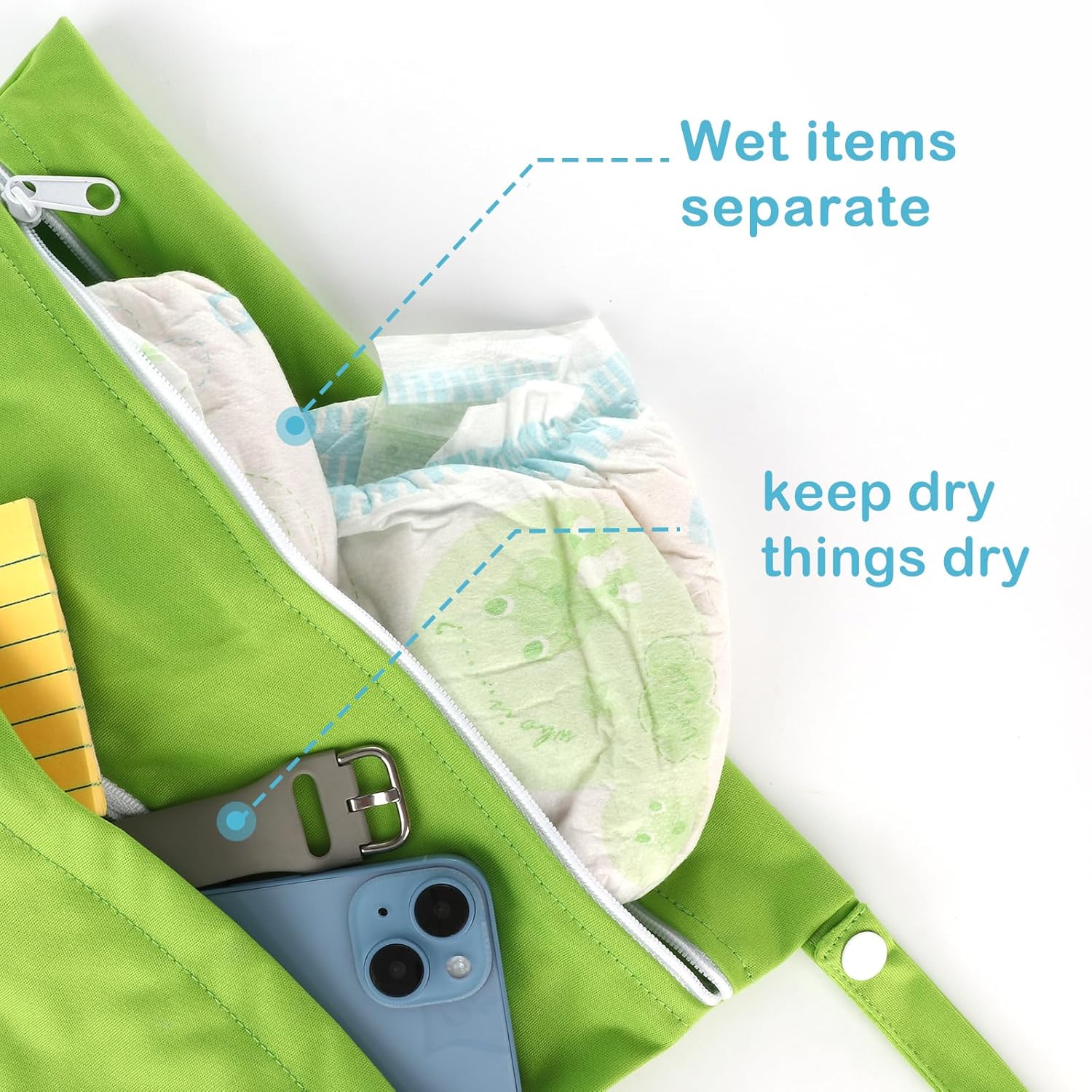- Come with TWO zip closures to ensure that nothing will drop out of the bag and keep the clean and dirty diapers separately. Also comes with durable handle for easy carrying or attaching to your diaper bag or stroller.