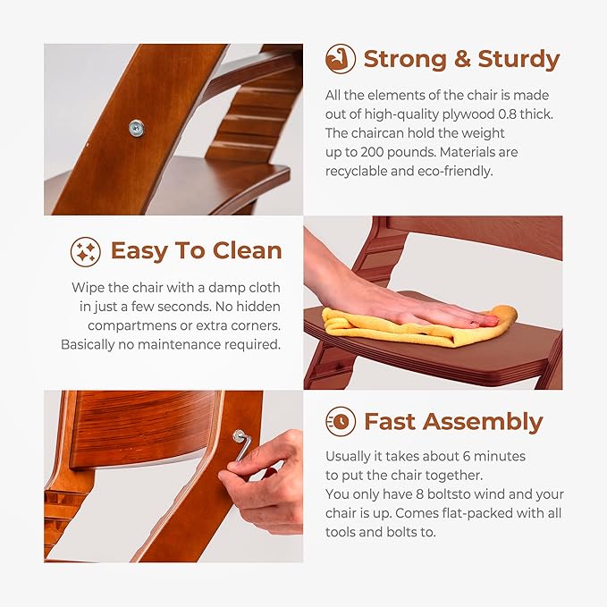 - 🧽 STRESS-FREE CLEANUP: Designed for real life with kids. The smooth, lacquered surfaces wipe clean in seconds. No fabric crevices to trap food, no complicated parts to disassemble. More time enjoying meals, less time cleaning up after them.