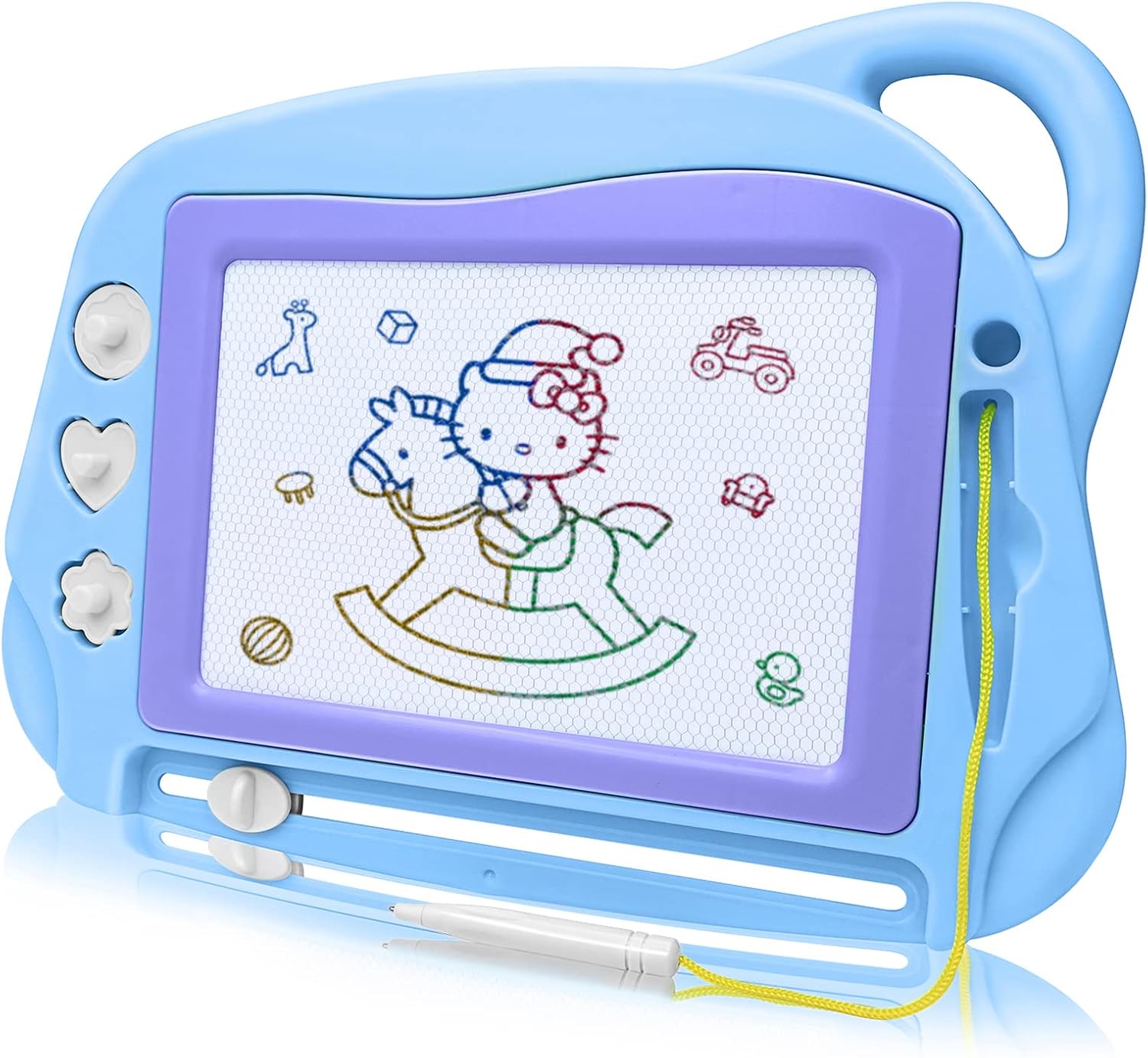 - Easy to USE: This Drawing Sketch Board includes a Large Drawing Screen with 3 Stampers(1 circle, 1 flower and love), 1 Easy Slider Eraser and 1 Pen. Hours of No-Mess Magnetic Colorful Drawing Fun, Start Your Kids' Creativity.