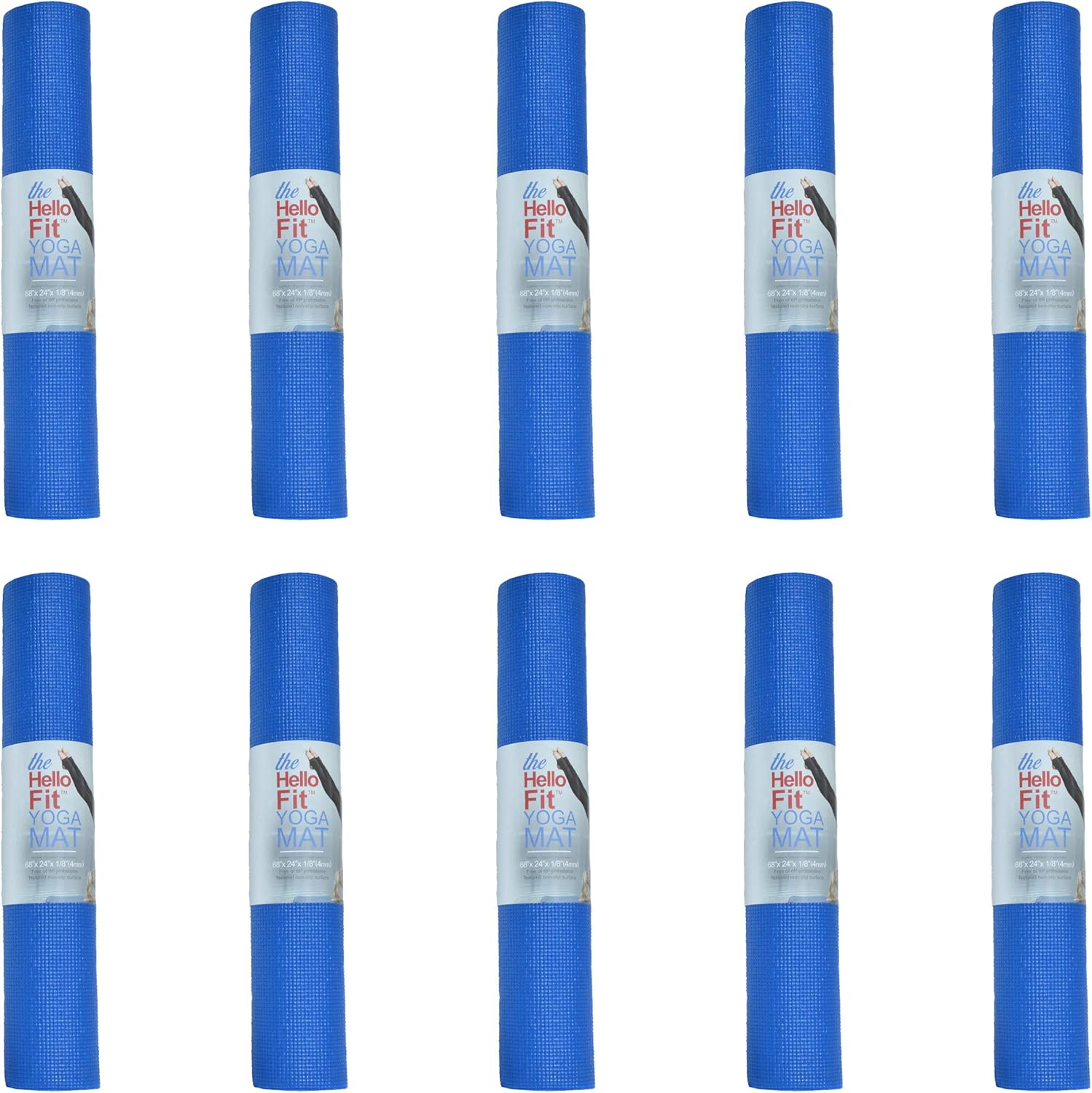 Hello Fit 10-Pack Yoga Mat, 68" x 24" Non Slip Exercise Mat, 4mm Thick Gym Mat for Fitness and Stretching, Bulk Non Toxic Yoga Mats for Schools and Studios