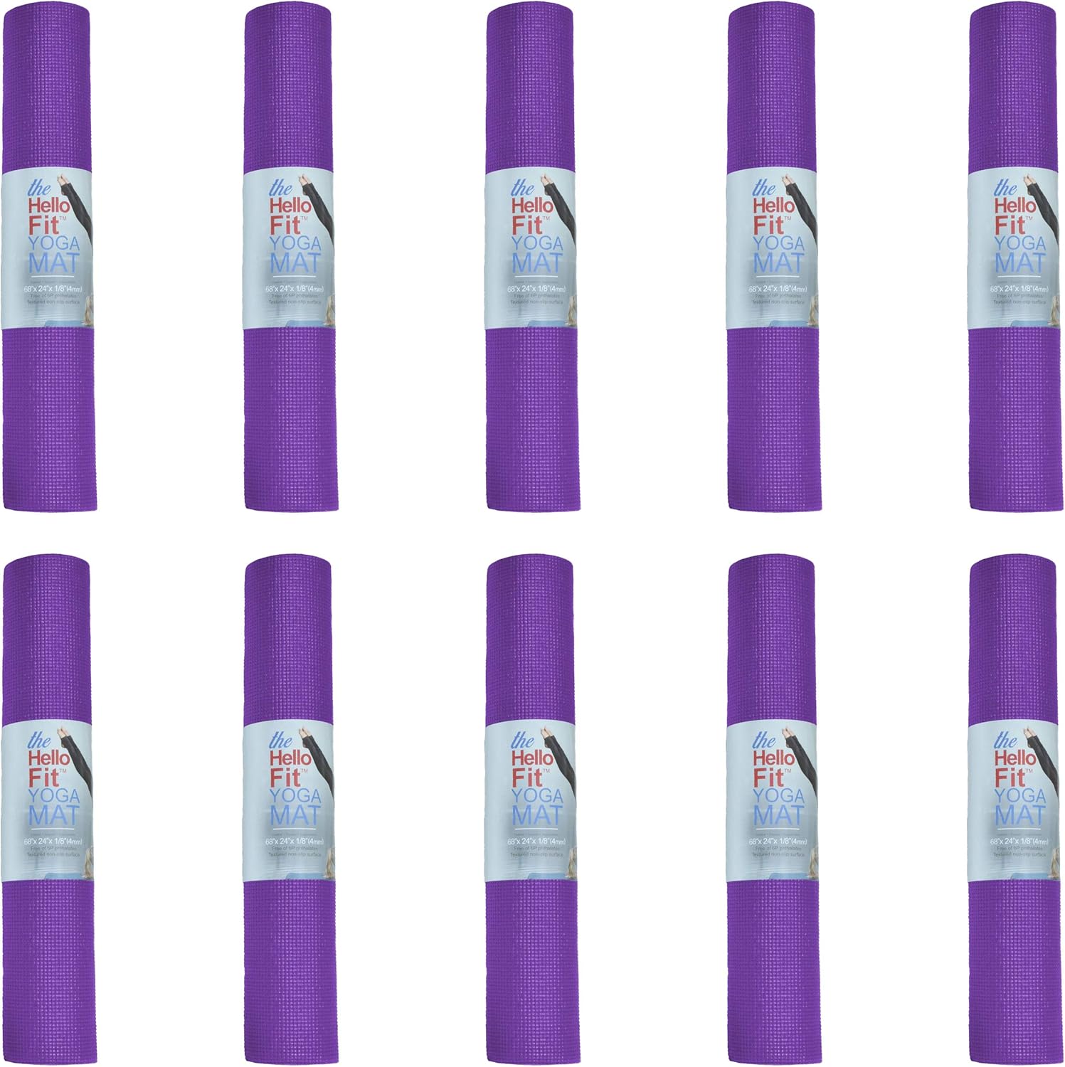 Hello Fit 10-Pack Yoga Mat, 68" x 24" Non Slip Exercise Mat, 4mm Thick Gym Mat for Fitness and Stretching, Bulk Non Toxic Yoga Mats for Schools and Studios