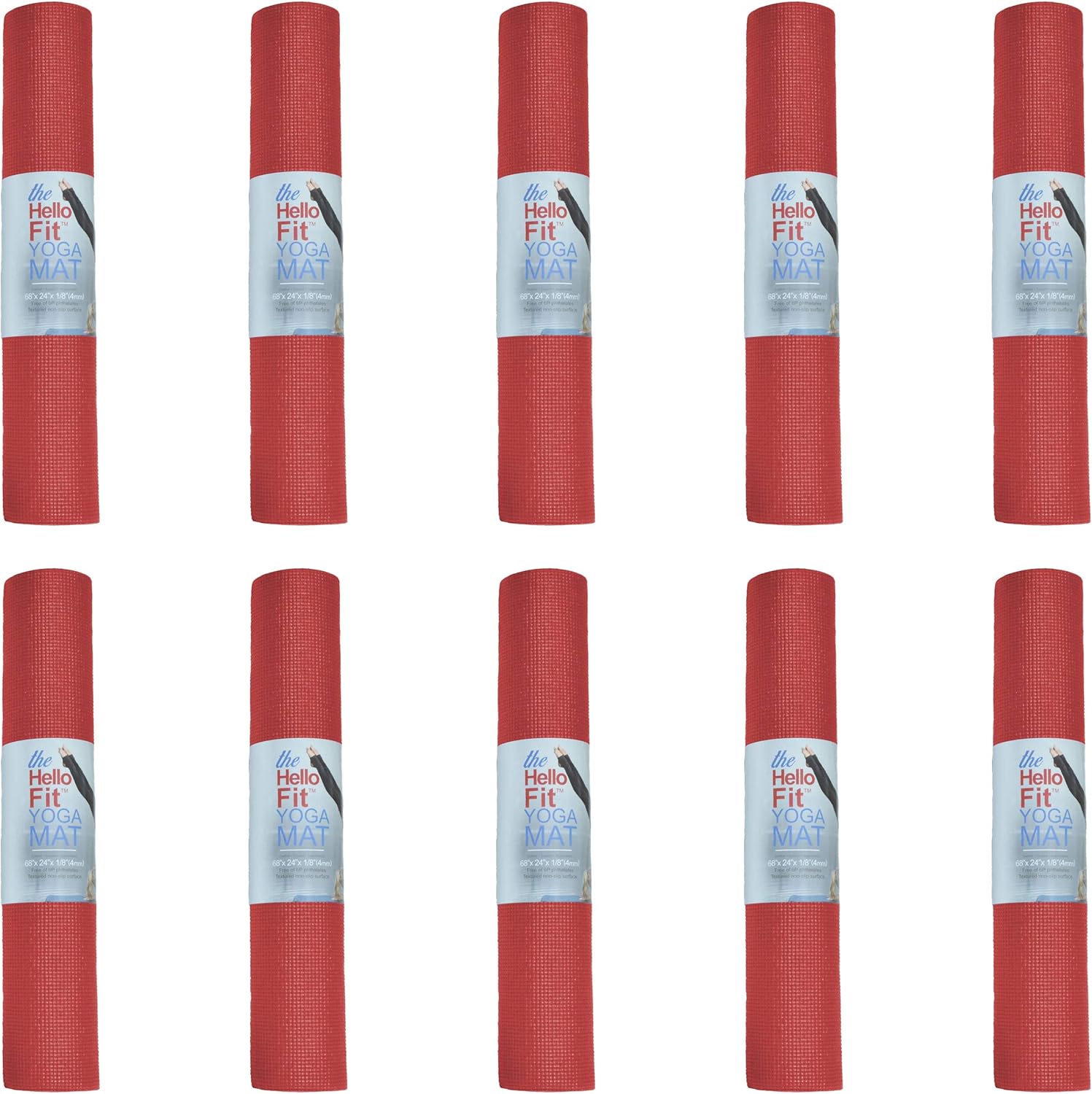 Hello Fit 10-Pack Yoga Mat, 68" x 24" Non Slip Exercise Mat, 4mm Thick Gym Mat for Fitness and Stretching, Bulk Non Toxic Yoga Mats for Schools and Studios