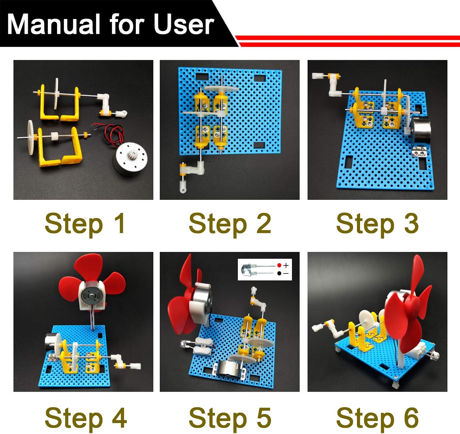- Educational toys - Through this DIY package, children can exercise their own hands, thinking, exploring, creating ability,Build a toy that light up the LED by hand and the drive motor to learn the principle of conversion between energies.