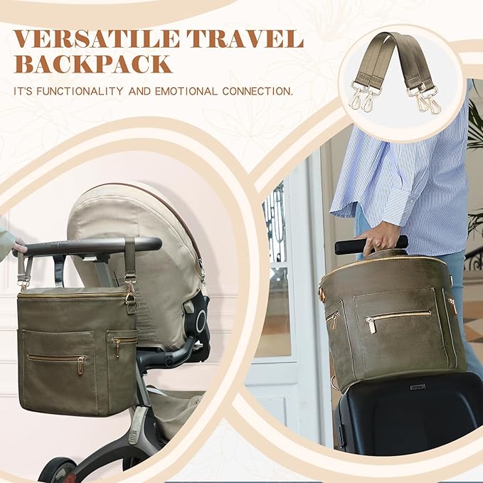 - 【Multiple Ways to Use】This travel diaper bag can be worn as a casual backpack, cross body diaper bag, mommy bag, or attached to a stroller with the included straps. The back pocket can even be zipped to keep your tablet and unzipped to turn the diaper backpack into a luggage sleeve, making travel with your baby a breeze. Ideal for use as a baby diaper bag, mother's backpack, nurse bag, or stroller diaper bag.Additionally, it is also an ideal gift for Mommy to Be,hospital bag, Mother's Day, etc.