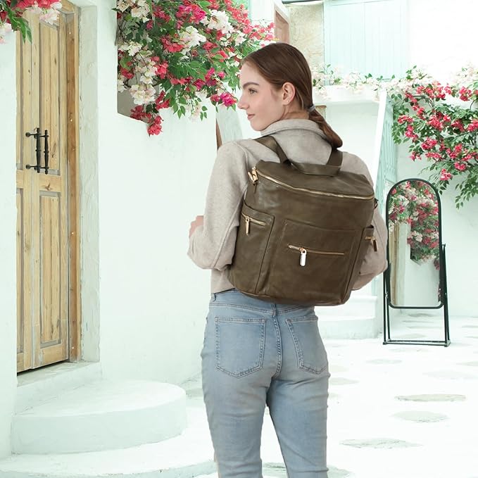 - 【Premium Leather Material & Easy Cleaning】Leather Diaper bag is made of 100% PU leather, featuring a luxurious & refined texture, lined with 100% light color waterproof nylon, soft & comfortable, highly stain resistant durable. Add a sense of refinement to your women's leather diaper bag backpack. Diaper bag tote is very easy to clean, simply use a damp towel to wipe off any spills. Then hang up your mommy bag tote to dry, don't put it in the washing machine or dryer.