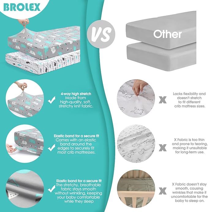 - PERFECT FIT FOR CRIB MATTRESSES:Designed specifically for cribs, these crib mattress sheets feature elastic edges for a secure, snug fit on standard crib mattresses. No slipping or bunching, ensuring a safe and comfortable space for naptime and nighttime sleeping.