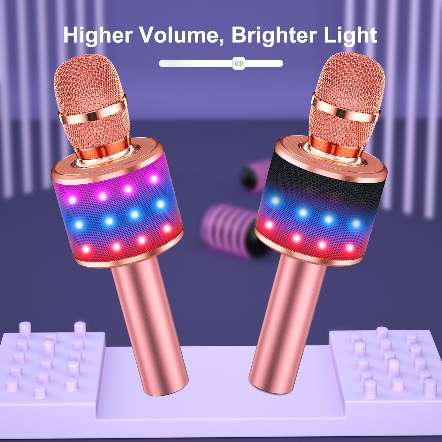 BONAOK Karaoke Microphone for Kids & Adults - Bluetooth Microphones Singing Mic with Disco Lights, Echo Effect, Built-in Speaker Portable Karaoke Player for Party Travel Gifts Q78(Rose Gold)
