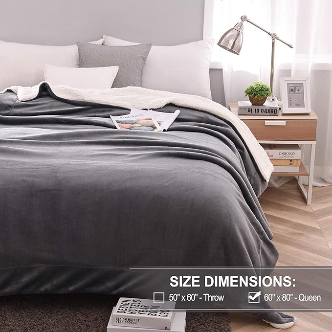 NANPIPER Sherpa Blanket Twin Warm Bed Blanket for Winter Cozy Soft Fuzzy Couch Throw Flannel Fleece/Wool Like Reversible Plush Blanket (Grey Twin Size 60"x80")