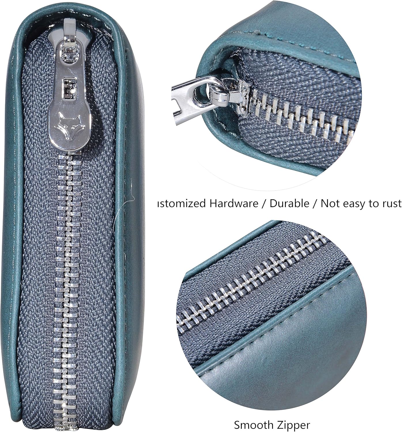 - Reliable Multipurpose Card Wallet: In addition to cards, this wallet also can store passports, ID, receipts, cash, flat keys and so on. 2 wide slots just outside of the main accordion compartment are perfect room for passport, folded cash, receipts. And there are extra 2 slim slots outside of wide slots, allow you a safe place for ID and Driving's license. With a full-around zipper for double protection, enjoy a convenient daily use anytime