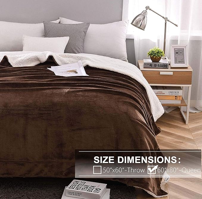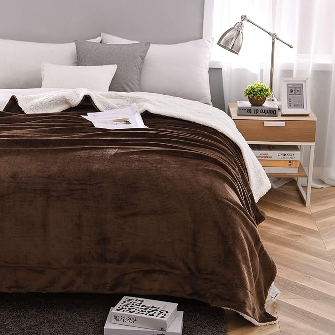 NANPIPER Sherpa Blanket Twin Thick Warm Fuzzy Flannel Fleece/Wool Like Reversible Velvet Plush Blanket (Brown Twin Size 60"x80")