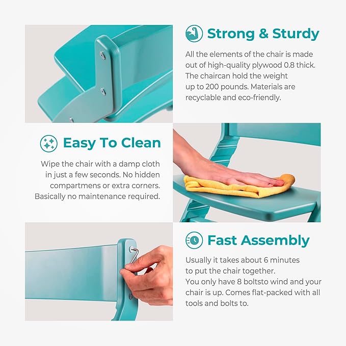 - 👣 HEALTHY SITTING, HAPPY MEALS: A fully adjustable seat and footrest provide perfect ergonomic support at every age. When kids are comfortable with their feet planted, they can focus better on eating and family conversation.