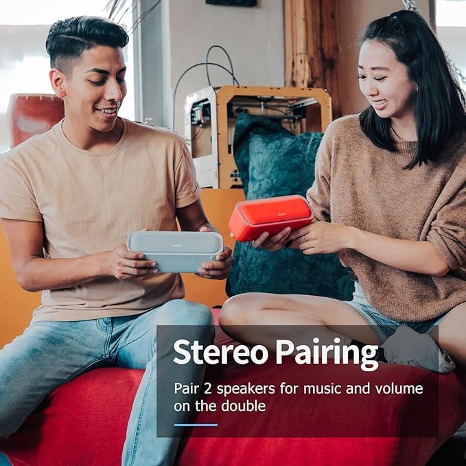 - Powerful Stereo Sound: Experience 20W of immersive stereo sound with dual full-range drivers and dual passive radiators, delivering enhanced bass, tight mids, and crystal-clear highs—all without distortion, even at max volume thanks to advanced DSP Technology. Perfect for background music during relaxed gatherings or cranking up the energy when the party gets going.