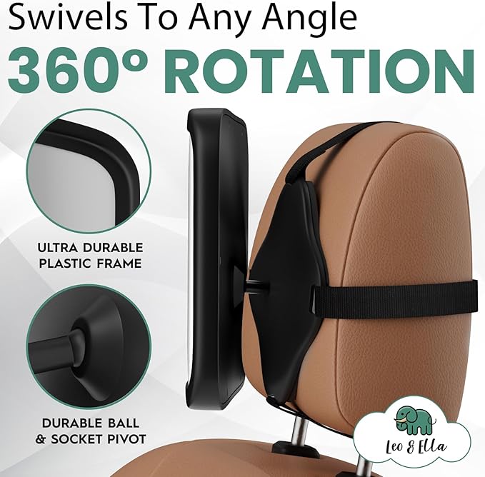 Leo and Ella - Baby Car Mirror - Extra Large & Ultra Clear Infant View, Crash Tested Shatterproof Design w/ 360° Adjustable Mount, Premium Car Mirror For Baby