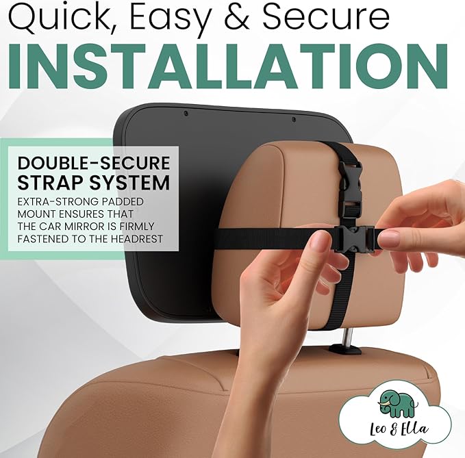 - ⚡ EASY, NO-HASSLE INSTALLATION - Skip the frustration! Our infant car mirror for back seat rear facing is fully assembled and secures in just 30 seconds to any adjustable headrest with double-strap fastenings.