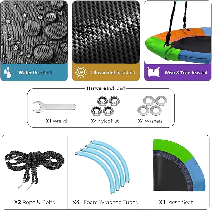 - ADORABLE KID’S SPINNER SWING (24" MAT SEAT) – Provides a fun hang out space for kids to safely spin or swing into action during playtime