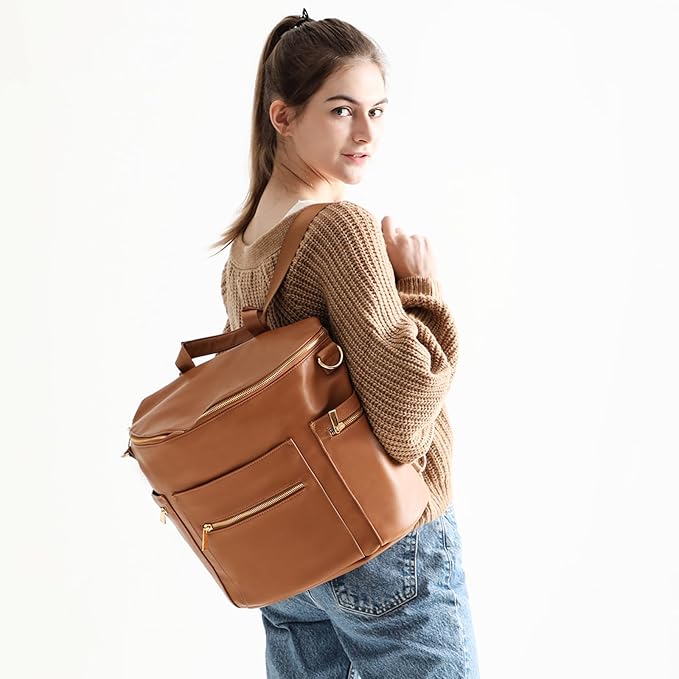 - 【Premium Leather Material & Easy Cleaning】Leather Diaper bag is made of 100% PU leather, featuring a luxurious & refined texture, lined with 100% light color waterproof nylon, soft & comfortable, highly stain resistant durable. Add a sense of refinement to your women's leather diaper bag backpack. Diaper bag tote is very easy to clean, simply use a damp towel to wipe off any spills. Then hang up your mommy bag tote to dry, don't put it in the washing machine or dryer