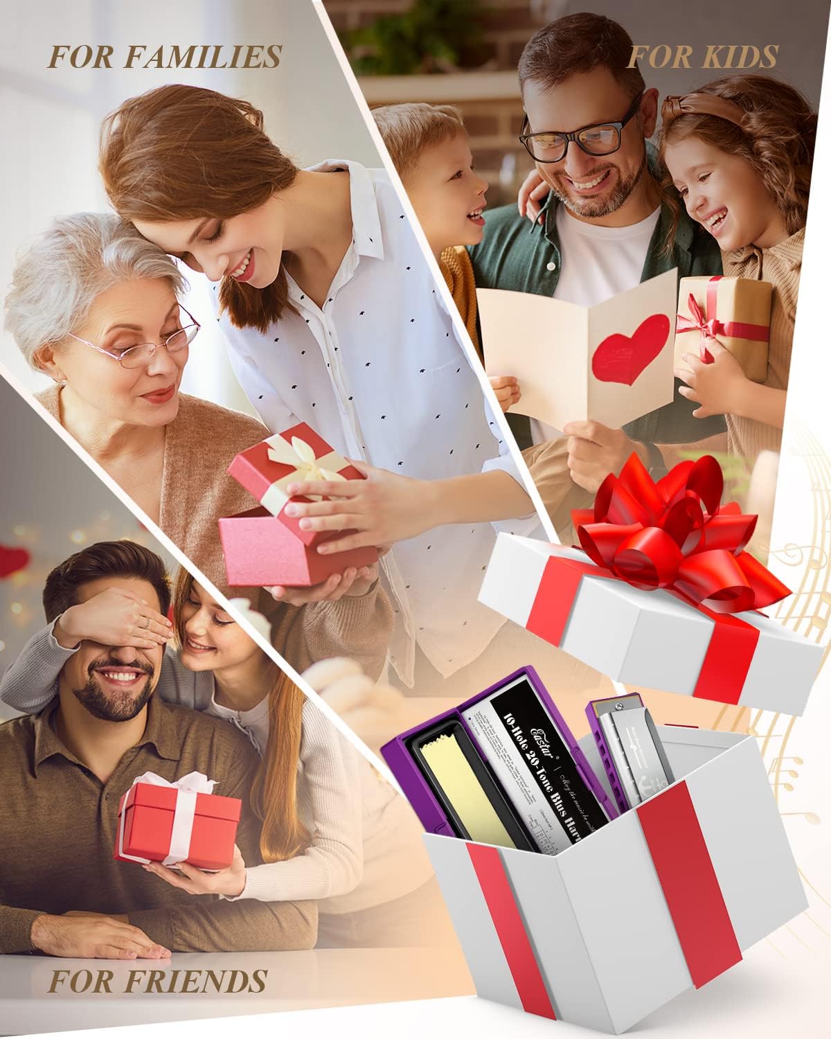 - ♬🎁 HIGH-QUALITY MATERIAL – Equipped with thickened brass base (1.0mm thick), this harmonica has stable resonance and reliable airtightness, with a pretty and durable silver cover plate. The non-toxic ABS combs are waterproof, high in hardness, and durable.