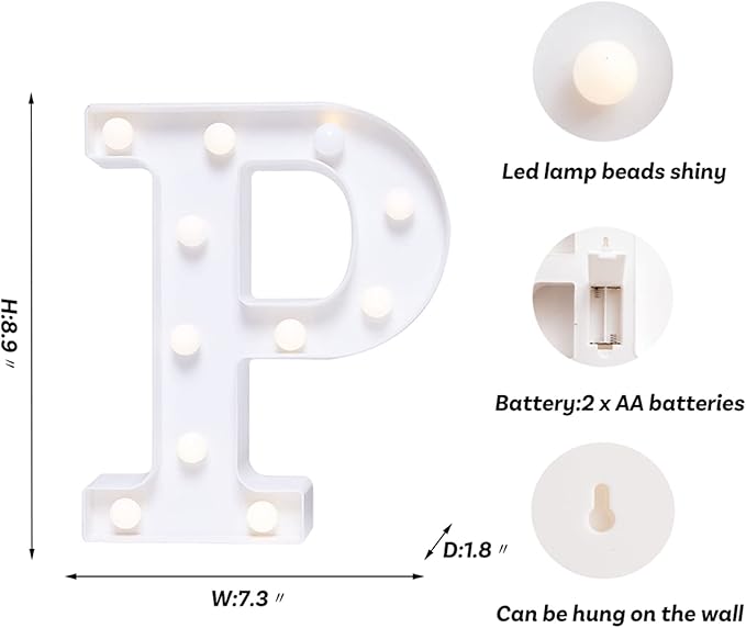 Foaky LED Letter Lights Sign Marquee Light Up Letters Sign for Night Light Wedding/Birthday Party Battery Powered Christmas Lamp Home Bar Decoration(P)