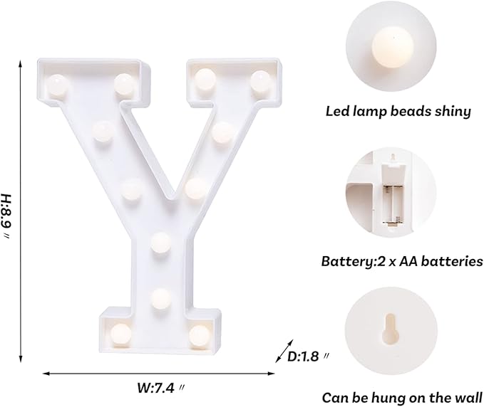Foaky LED Letter Lights Sign Marquee Light Up Letters Sign for Night Light Wedding/Birthday Party Battery Powered Christmas Lamp Home Bar Decoration(Y)