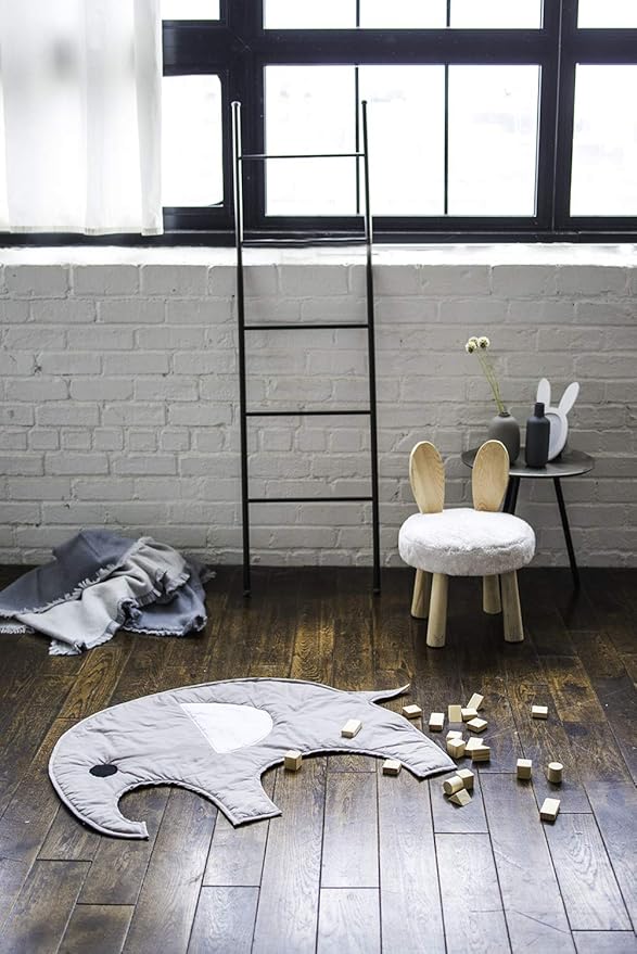 - ADORABLE DESIGN: Instantly transform the space of a playroom, nursery or baby room with the addition of this mat. Adds a splash of personality and a friendly baby vibe to complete a modern room. Light grey fabric, elephant silhouette to fit your nursery theme or contemporary style play mat.