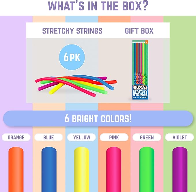 - Engaging Sensory Fun - Our Stretchy Strings offer a fun and enjoyable sensory experience for everyone. With vibrant colors that provide visual stimulation and a gentle tactile feel, they are a perfect addition to quiet spaces or for fun during playtime.