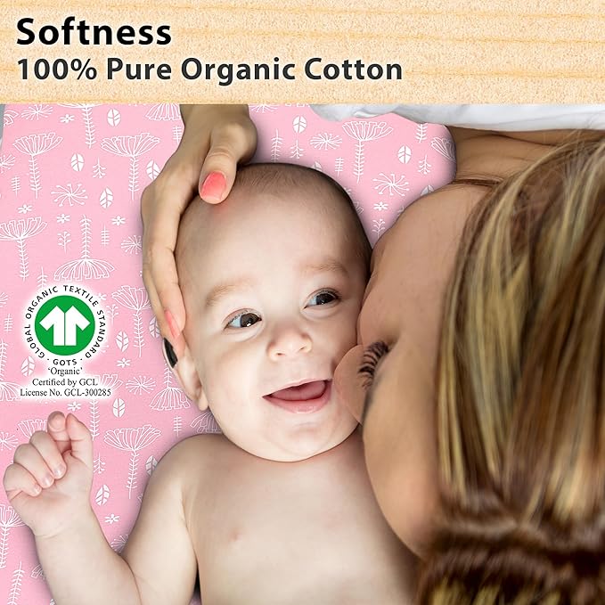 Bassinet Sheets Girl– 3-Pack Soft Fitted Bassinet Sheets, Organic Cotton, Breathable & Cozy, Fits 32x16x4 Inch Rectangle, Oval & Hourglass Mattresses (Pink Stars)