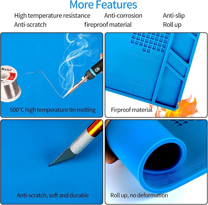 Kaisi S-180 Large Silicone Soldering Mat Magnetic Repair Work Mat, Heat Resistant Insulation Large Platform Station Pad for Soldering, Electronics, Computer Repair, Size 21.6 x 13.8 inch