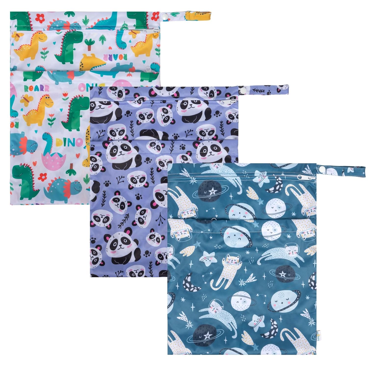 - Multi-Function: You will receive 3 pack wet bags, which size is 11.8"x14.2". They are perfect for preserving cloth diapers and other baby products, and they can also be used as swimsuit bags, bikini bags, bathing suit bags, travel bags, gym bags, storage bags, cosmetic bags, handbags, wash bags, organizer bags, breast pump parts bags, even as picnic bags. They are ideal for baby shower gift, get yours today!