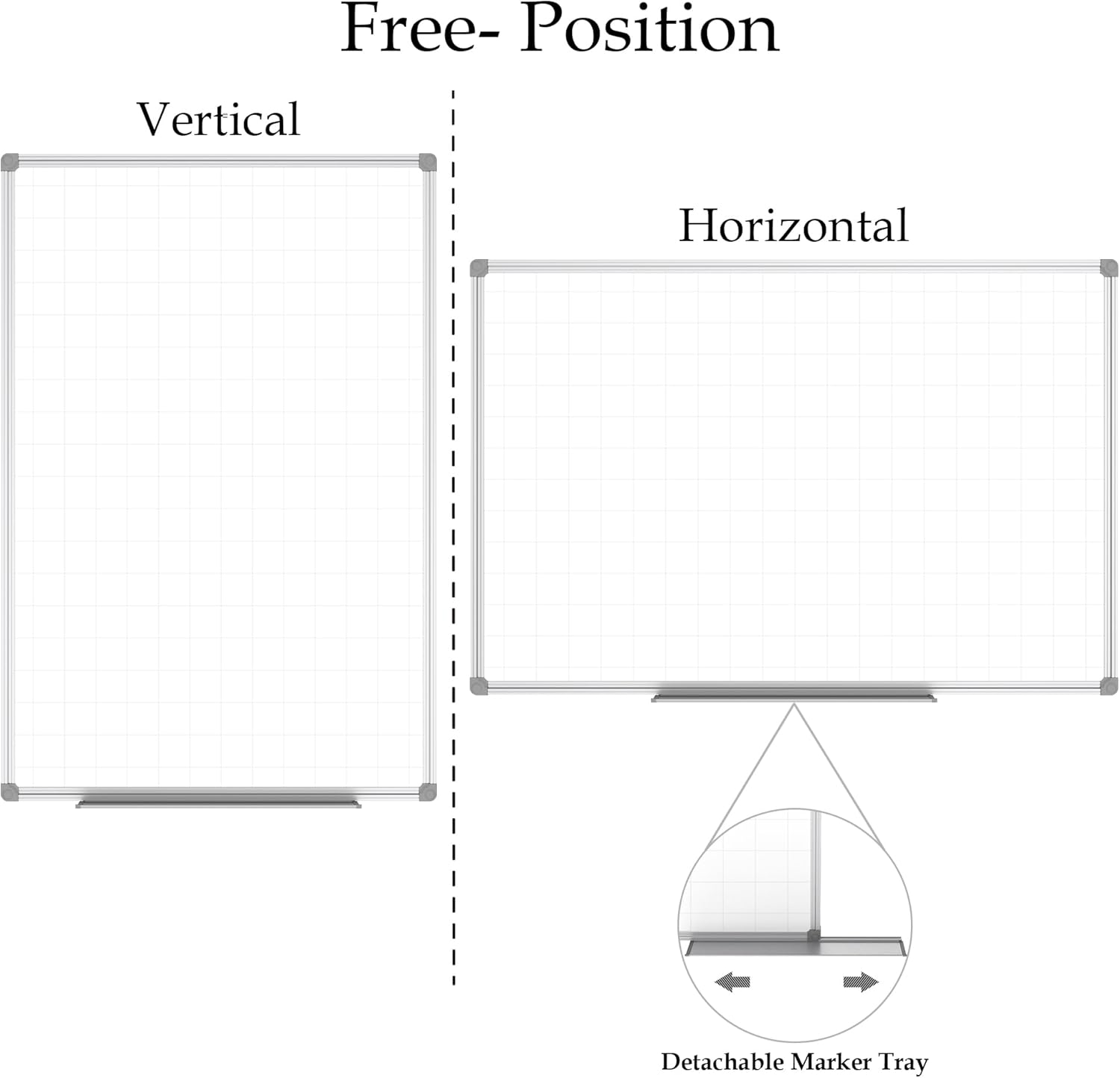 - STURDY ALUMINUM FRAME & MARKER TRAY: Anti-Scratch satin silver aluminum frame, Round nylon corners, removable integrated aluminium marker tray, perfect organizer for school home and office.